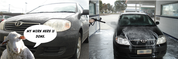 Driving on the Westgate Bridge, I notice a few small brown droplets on the windshield, odd because it was neither raining nor is rain usually brown. Then it began to pour, and that’s when I realised it wasn’t raining, I was driving next to a truck full of sheep, and one of these sheep decided to go and diarrhoea all over my car.