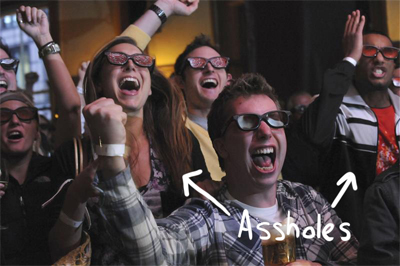 3D TV Owner: Really, oh. The TV only came with two pairs. I was expecting you all to bring your own. Guess you can’t watch the game, douche.